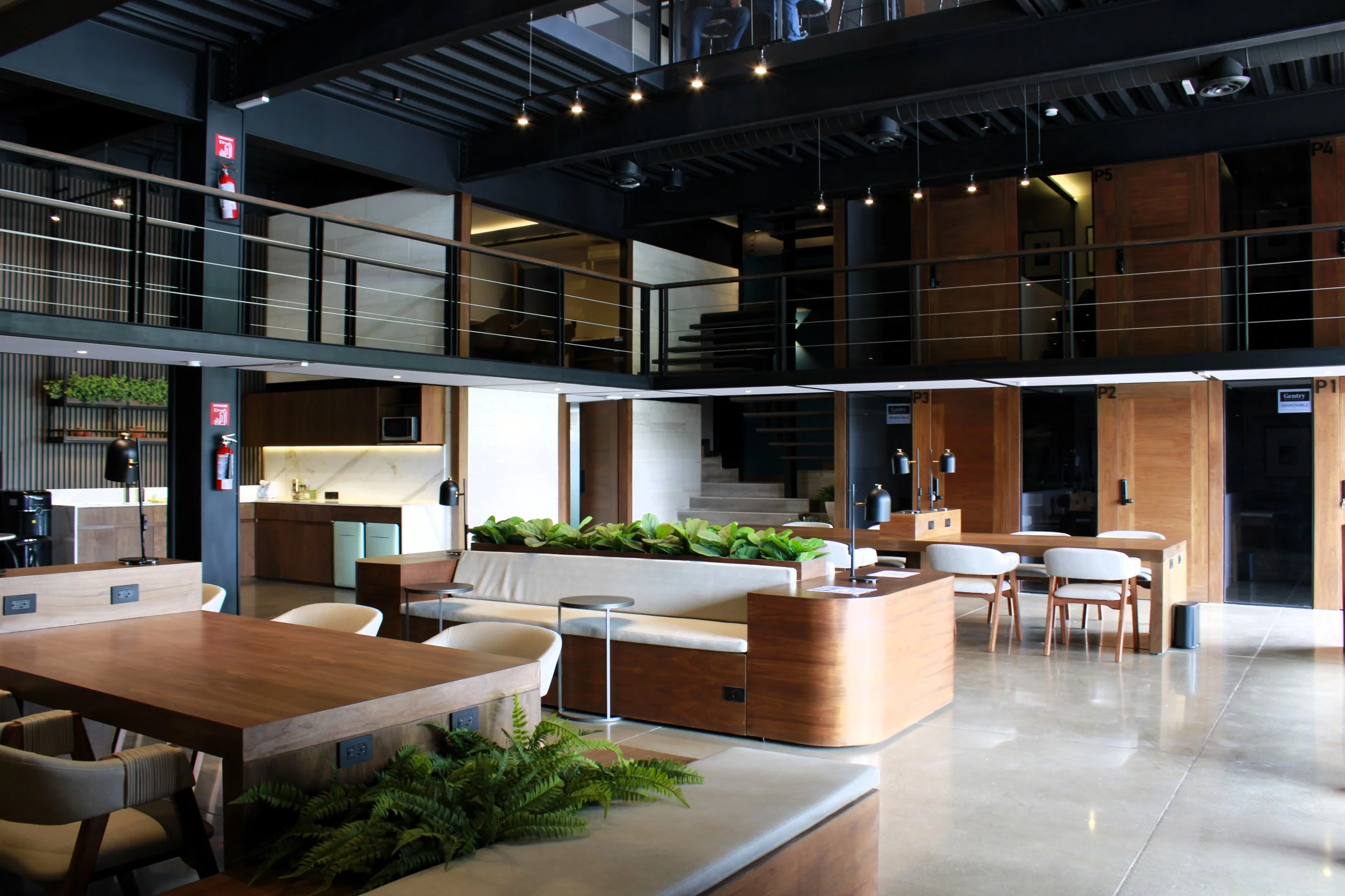 Un espacio diseñado para impulsar tu productividad y conectar con personas clave. Disfruta de áreas como Coffee Break, salas de descanso, mesas de trabajo en equipo, comedor y terraza.